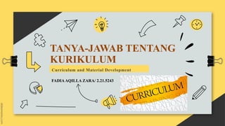 Dokumen ini membahas pengertian kurikulum dari beberapa perspektif, termasuk dimensi, fungsi, serta keterkaitannya dalam pendidikan. Dijelaskan juga konsep ideal, aktual, dan tersembunyi dalam kurikulum, serta peran konservatif, kreatif, dan evaluatif dalam pengembangannya. Selain itu, dokumen ini menekankan pentingnya kurikulum sebagai sistem yang terintegrasi untuk mencapai tujuan pendidikan.