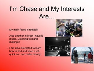 Chase Gauthier enjoys football, playing corner back and slot receiver, and wants to get into better shape. He also likes listening to and making music, learning how to record songs and share his music. Additionally, Chase wants to learn how to find stable work so he can earn money and purchase items.