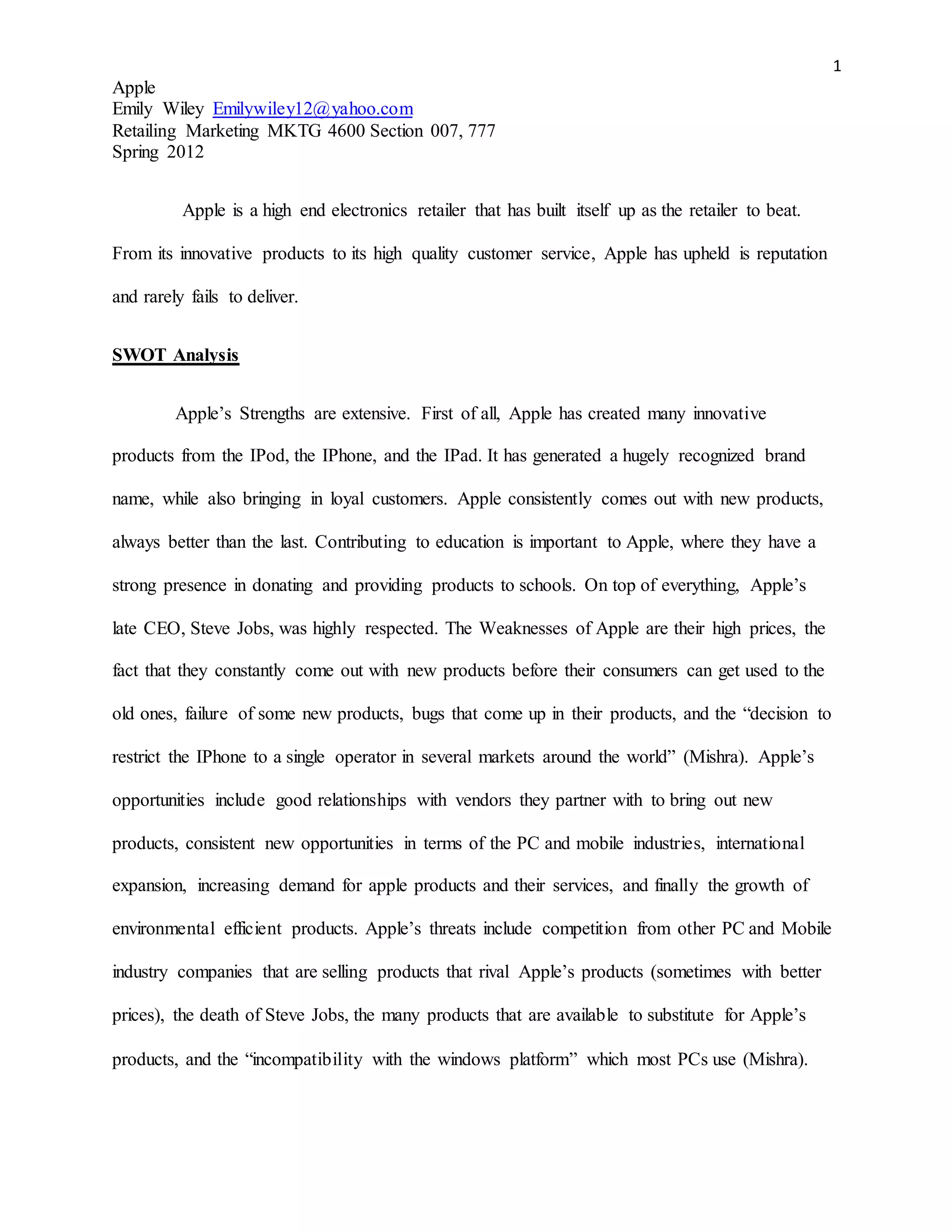 Apple is a highly successful electronics retailer known for innovative products. However, one of Apple's problems is unethical working conditions in their supplier factories. Workers have faced health issues from chemical exposure and explosions. While Apple claims to remedy issues, they have not fully addressed the problem. Two recommendations are for Apple to admit the problem and improve conditions through direct oversight, or to find new ethical suppliers in countries like India to build a clean sourcing strategy.