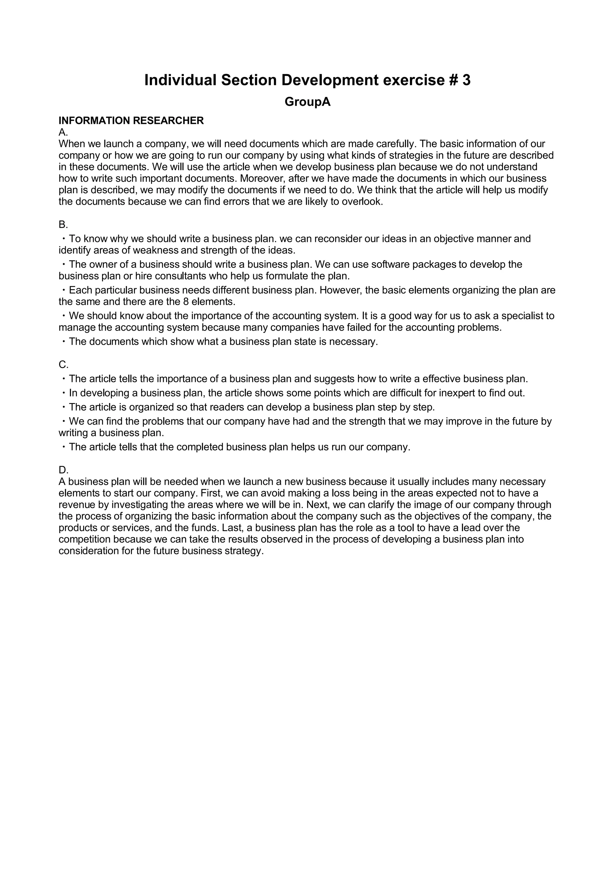 The document discusses the importance of writing a well-developed business plan when launching a new company. It notes that a business plan should include basic company information and strategies. It also suggests that writing a business plan can help identify weaknesses, reconsider ideas objectively, and clarify the company image. Finally, it states that a business plan can help avoid losses by investigating target areas and inform future business strategies.