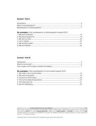 Individualization is increasing the opportunities for individuals to influence and shape their own lives through personal choices. While traditions and social norms once dictated many aspects of life, individuals now have more freedom to choose their education, career, lifestyle, and how they present themselves. However, factors like genetics, family background, and social environment still place limits on individual freedom and choice. The report explores how individualization is manifesting in society and increasing, but does not assume individuals have complete or unlimited freedom to choose their own path.