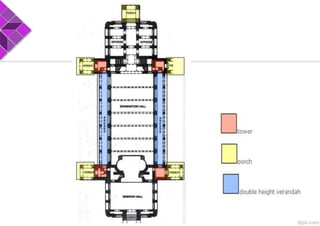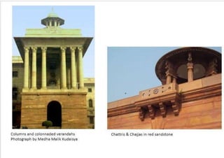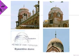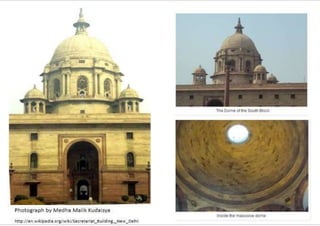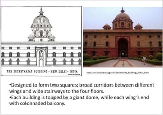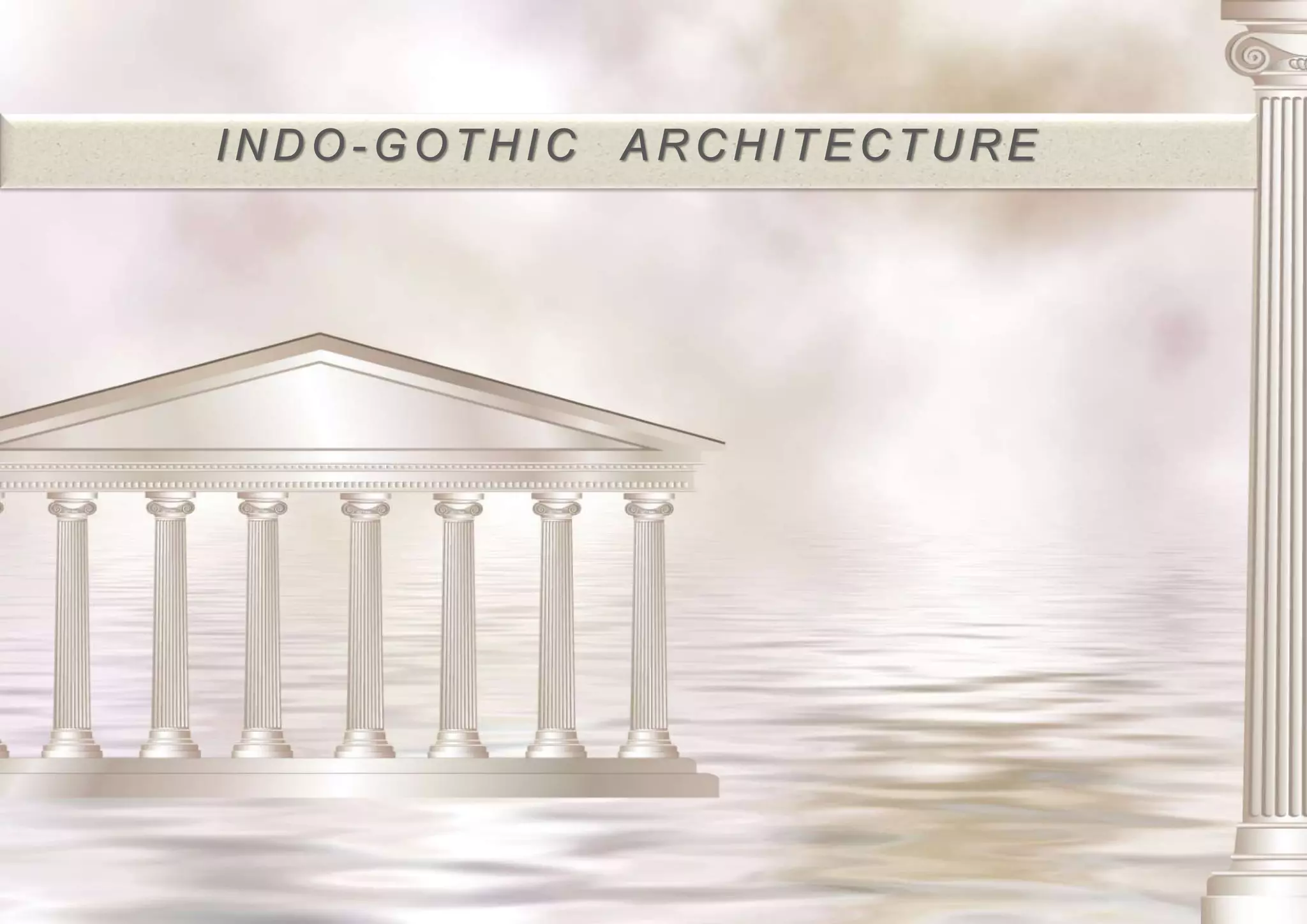 The document provides information on Indo-Gothic or Indo-Saracenic architecture. It discusses how this style fused elements of Indian-Islamic and native Indian architecture with Gothic revival and neo-classical styles favored in Victorian Britain. Some key features of Indo-Saracenic architecture discussed include bulbous domes, horseshoe arches, delicate ornamentation, and towers/minarets. Several prominent British architects who worked in this style are also mentioned, including Henry Irwin who designed notable buildings like the Madras High Court. Specific examples of buildings constructed in major cities across India in this hybrid Indo-Saracenic style are then outlined.