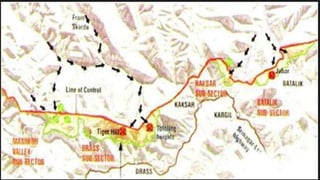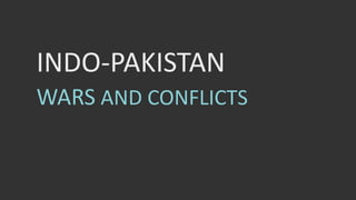 The document outlines the historical conflicts between India and Pakistan, focusing on key wars including the Kashmir War of 1947, the 1965 war, and the 1971 war related to Bangladesh's liberation. It highlights the reasons for disputes, such as the Kashmir issue and resource distribution, as well as significant military personnel and events during these conflicts. Additionally, it addresses ongoing tensions, such as insurgency in Kashmir and maritime trespassing, along with peacetime military contributions by Pakistan.