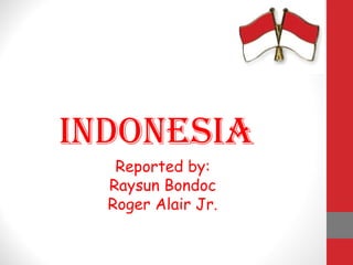Indonesia is the world's largest archipelago nation with over 245 million people. It has a diverse cuisine due to its thousands of islands, with influences from India, China, the Middle East, and Europe. Key staple foods include rice, tubers like cassava and sweet potato, and seafood since Indonesia is an archipelago. Popular dishes include nasi goreng, sate, and gado-gado. Meat consumption varies regionally depending on religious populations, with beef, goat and chicken commonly eaten. Spices are an important part of Indonesian cuisine due to its history as the Spice Islands.