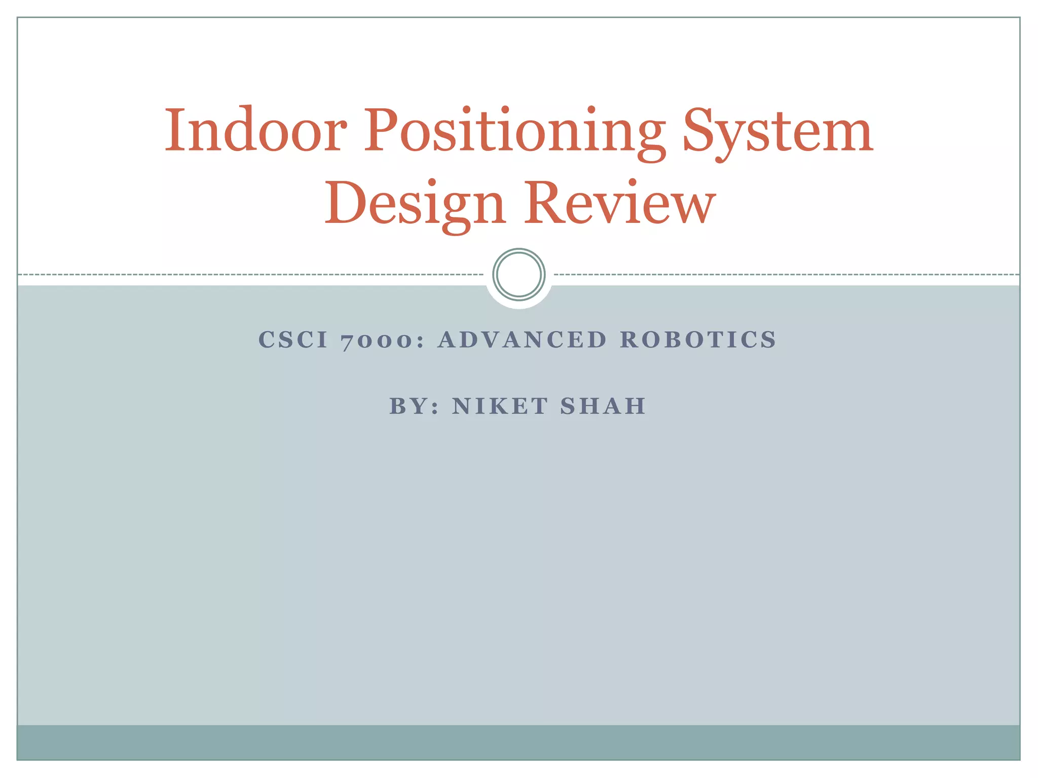 ![Current SystemPDP uses StarGazer ModulesOutput: [X,Y] Co-ordinates along with orientationProblems:Very CostlyPower ConsumptionForm Factor](https://image.slidesharecdn.com/niketshahindoorlocalization-110211170543-phpapp02/85/Indoor-Localization-Systems-3-320.jpg)