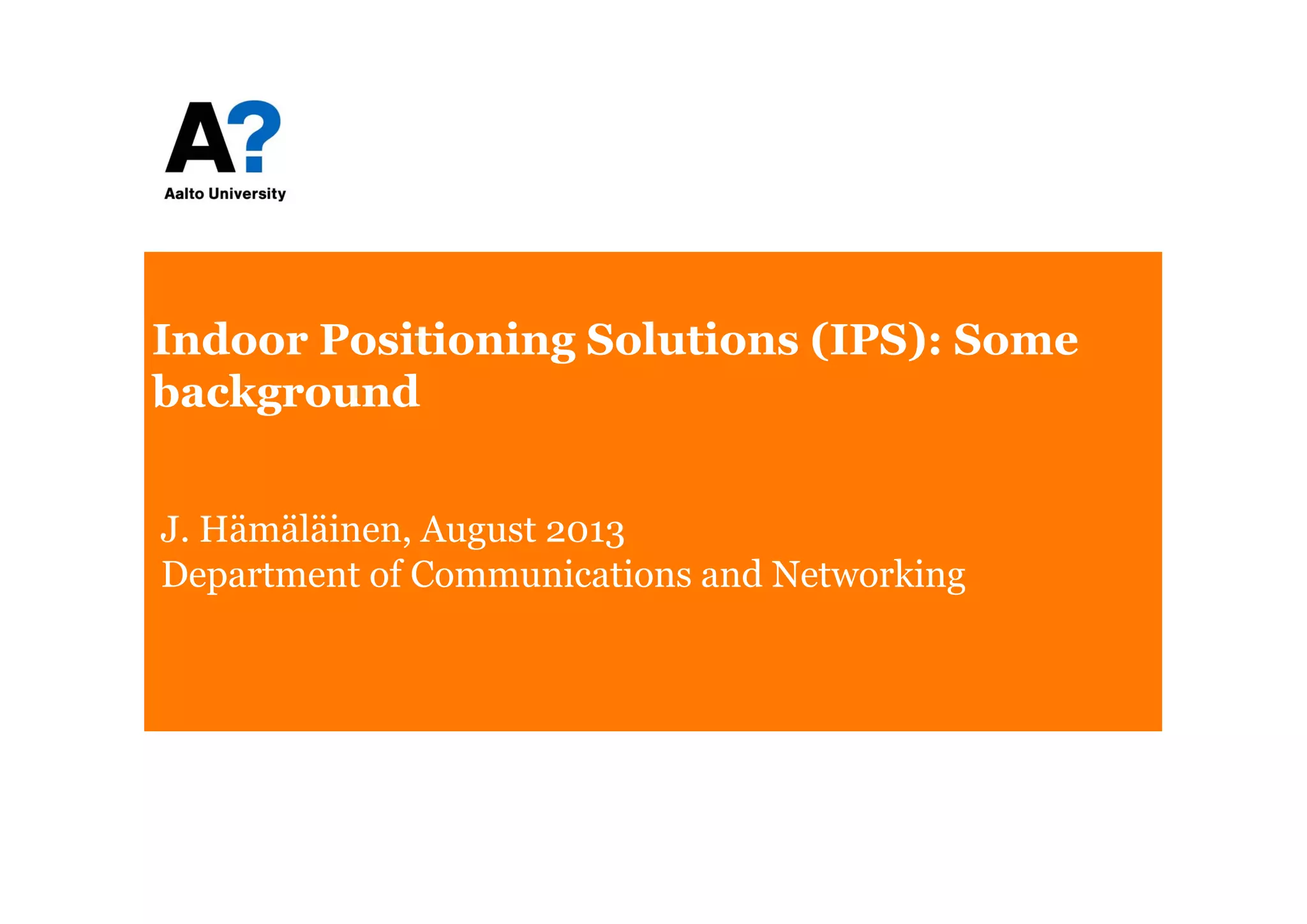 The document discusses indoor positioning solutions (IPS). It provides background on the growing indoor location market with over 130 companies working on indoor mapping, tracking, and navigation technologies. IPS can be used for navigation, emergency response, tracking people and assets, and user applications like social networking and shopping. Technical approaches to IPS include terminal-based methods using the device itself for positioning, infrastructure-based methods using dedicated indoor infrastructure or existing WiFi networks, and hybrid methods. Baseline positioning methods discussed are connection-based positioning using cell/access point IDs, trilateration/multilateration using signal strength or timing to estimate distance, triangulation using angle of arrival, and fingerprinting using spatial radio environment maps. Google aggregates WiFi