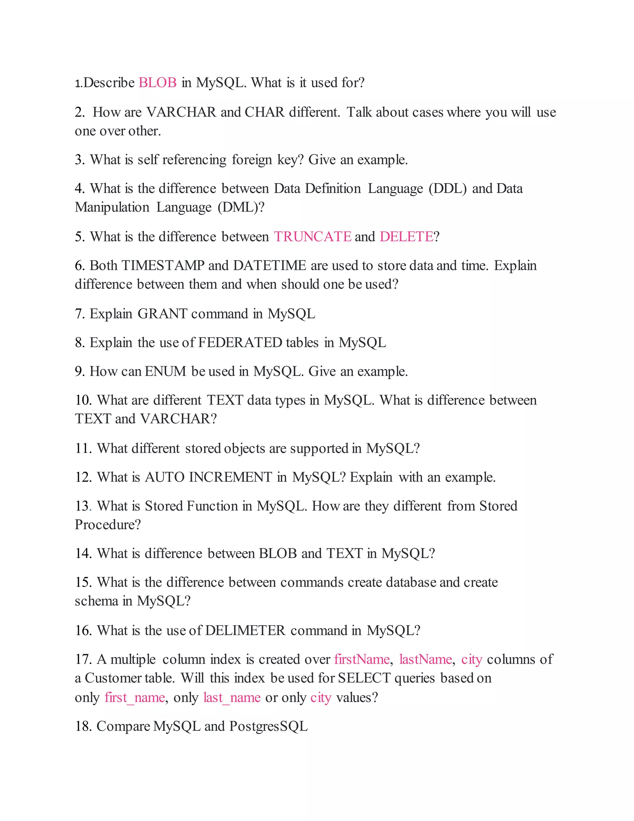 1. BLOBs store binary large objects and are used to store files like images or documents.