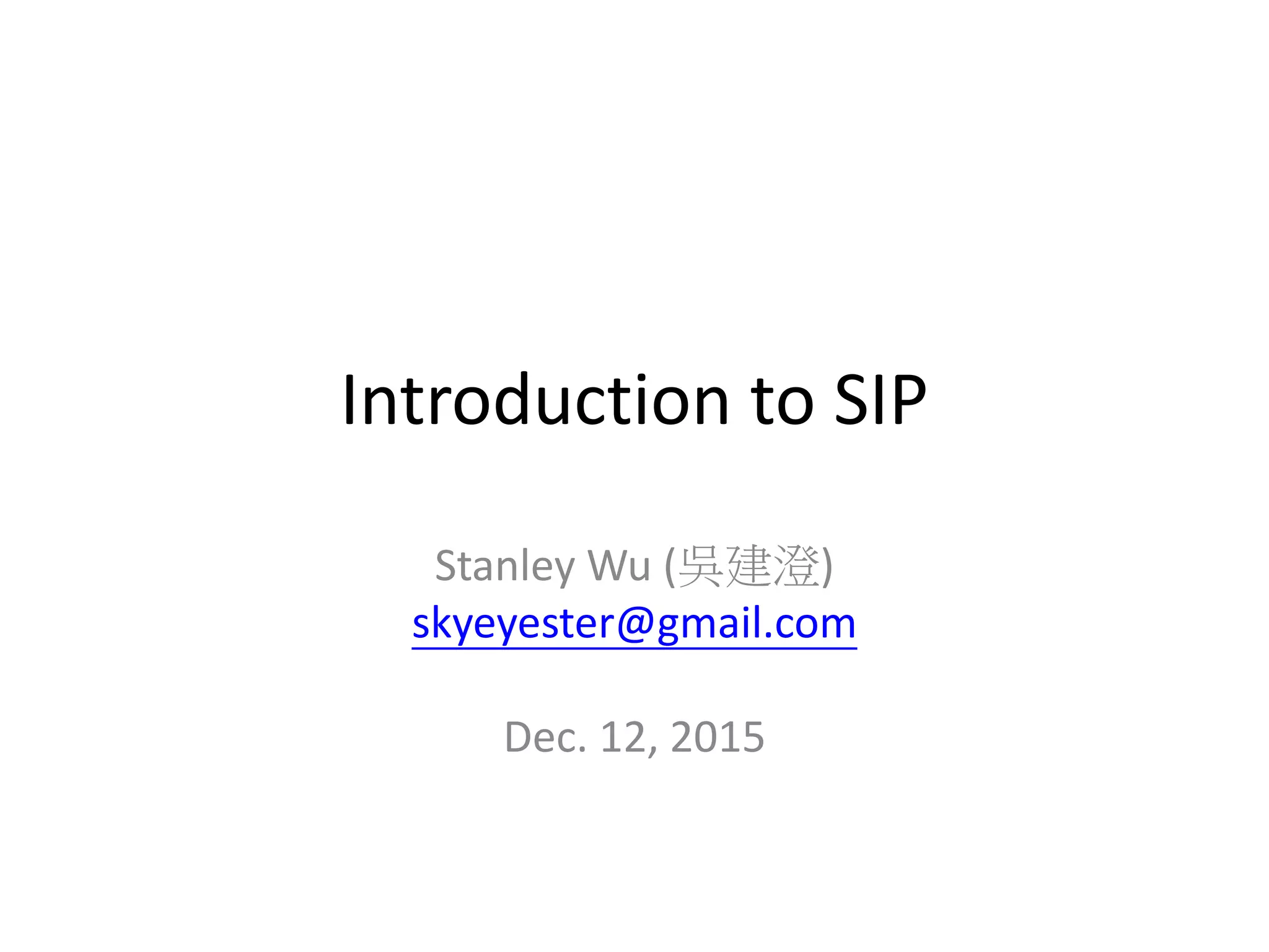 SIP is a signaling protocol used to establish multimedia sessions over IP networks. It allows clients to discover each other and establish communication sessions for voice, video, or other multimedia applications. The document provides an introduction to key SIP concepts including logical entities, request/response messages, basic call flows, and the SDP protocol for negotiating media parameters. It also describes how Wireshark can be used as a development tool to analyze SIP signaling packets.