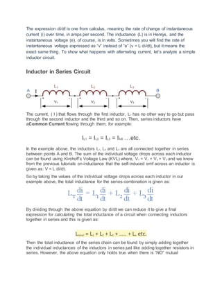 - Inductors oppose changes in current by inducing a voltage proportional to the rate of change of current in accordance with Lenz's law.