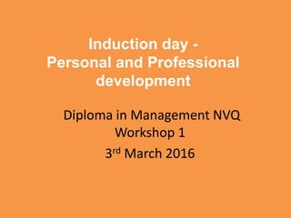 This document provides information about a Diploma in Management NVQ qualification offered to employees at the University of Westminster. The qualification is designed to provide a more in-depth understanding of employees' roles and improve performance. It involves interactive workshops, work-based assessments, and takes 12-15 months to complete. The qualification benefits both employees through enhanced skills and engagement, and the University through improved performance. Various levels are available for supervisors, managers, and senior managers.