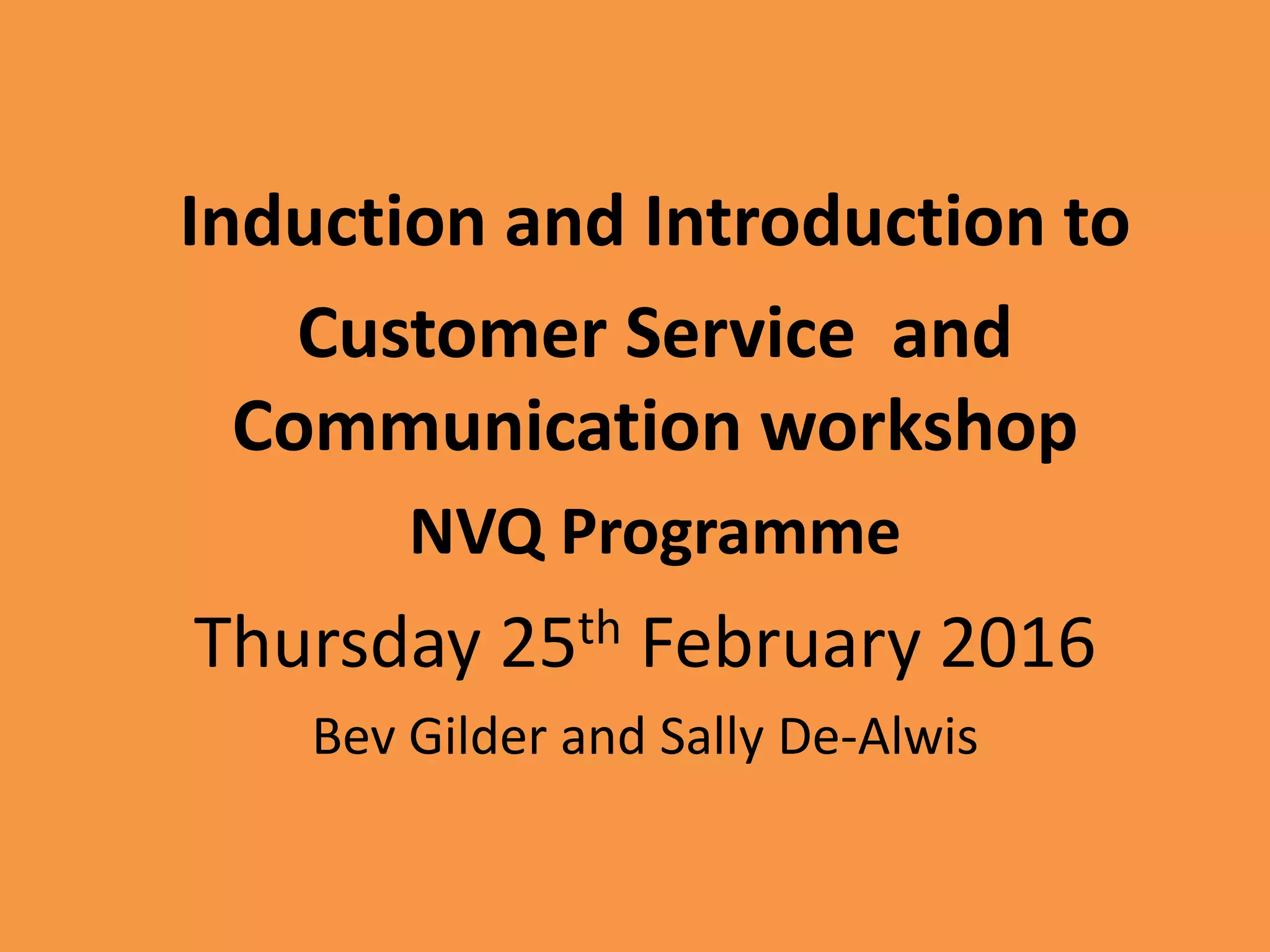 This document provides information about an induction workshop for an NVQ programme in customer service and communication. It outlines the structure and content of the workshop, including introductions, an overview of the NVQ programme and qualifications, and the levels and requirements for level 2 and level 3 certificates. It also details the units, workshops, and assessment process involved in achieving the NVQ, and next steps for participants to take, such as deciding on their level and beginning to collect evidence.