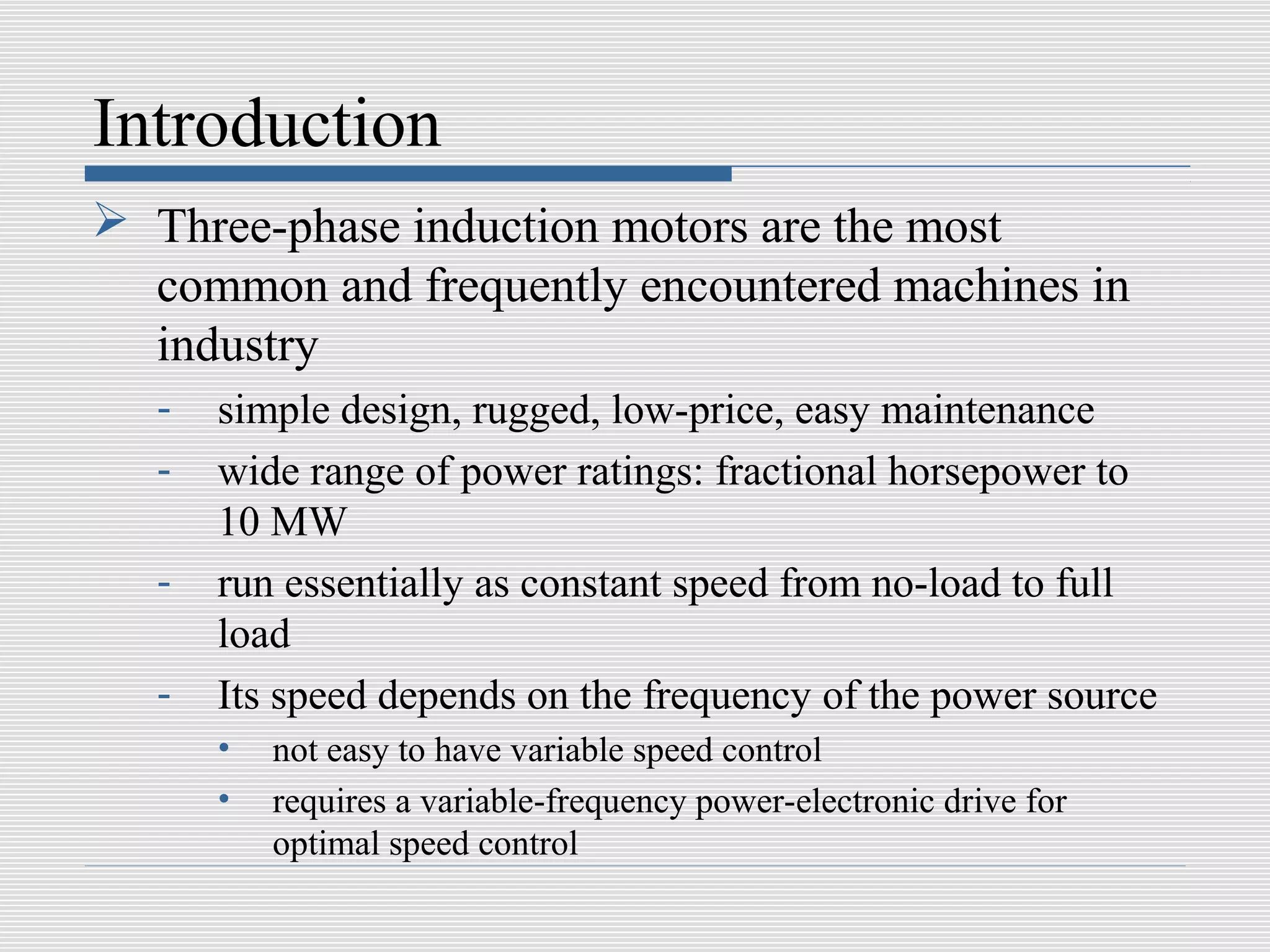 1. Given: Vs = 460 V, Ps = 25 hp, fs = 60 Hz, P = 4, R1 = 0.641 Ω, R2 = 0.332 Ω, X1 = 1.106 Ω, X2 = 0.464 Ω, XM = 26.3 Ω, Pr = 1100 W