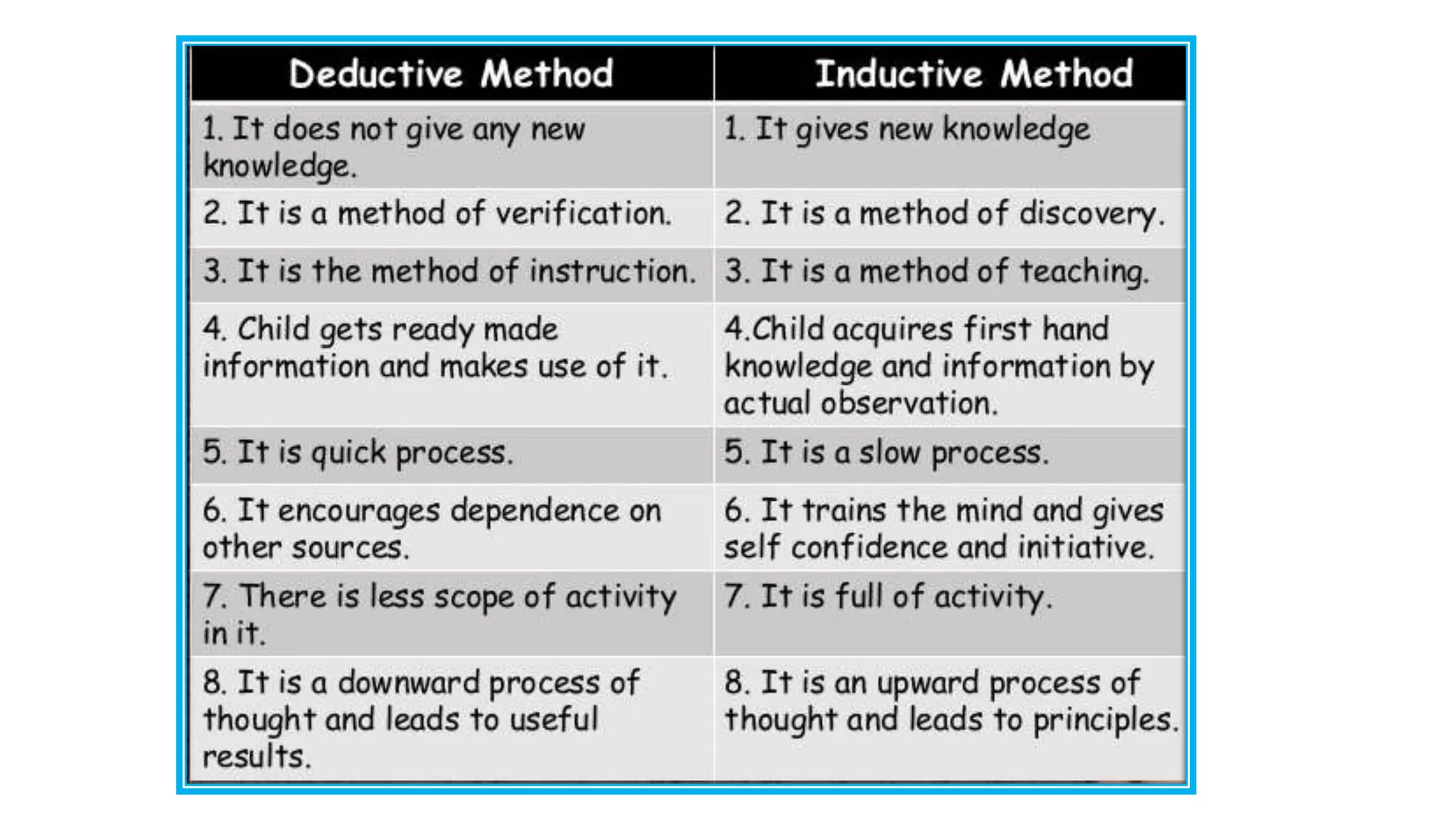 The document discusses the inductive and deductive methods of teaching, highlighting the inductive method's process of deriving generalizations from specific examples and its psychological advantages, while also noting its limitations in complexity and time consumption. In contrast, the deductive method starts with general rules and applies them to specific cases, which is faster and more suitable for a broader range of topics but may discourage engagement and critical thinking. Both methods are described with their respective merits and demerits, providing insights into their applications in education.
