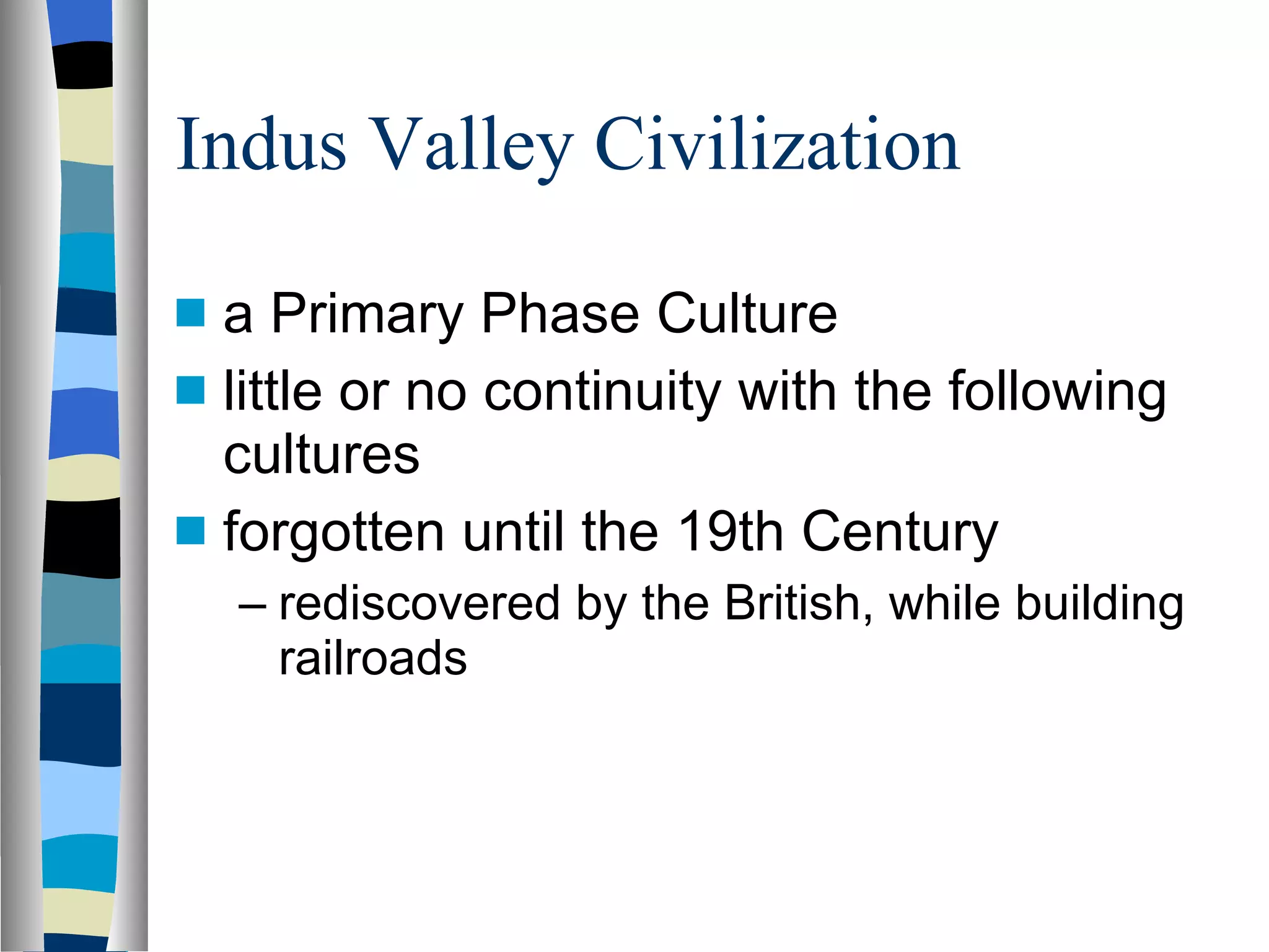 The Indus Valley Civilization was a Bronze Age civilization that flourished between 3300 BCE and 1300 BCE in what is now Pakistan and northwest India. The civilization was spread out along the Indus River valley, and two major cities, Harappa and Mohenjo-Daro, had populations of up to 40,000 people. The civilization developed new techniques in metallurgy and handicraft and had a sophisticated urban culture with standardized brick sizes, street grids, and sewage systems. While the writing of the Indus civilization remains undeciphered, excavations have revealed evidence of advanced engineering and infrastructure. The decline of the Indus Valley Civilization around 1900 BCE may have been caused by environmental changes like