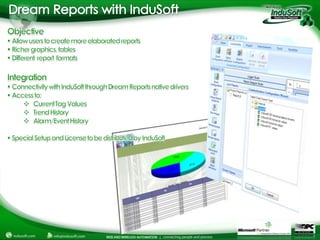 Established in 1997, the document discusses a pioneering HMI/SCADA solution for Microsoft Windows CE, featuring web integration, database connectivity, and support across various operating systems. It highlights capabilities such as mobile access, real-time data exchange, and extensive product customization options, along with compatibility with multiple database technologies. The company offers support information and contact details for regions including the USA, Brazil, and Germany.