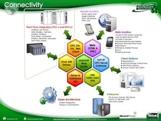 The document summarizes an HMI and SCADA software called InduSoft Web Studio. It was established in the US in 1997 and was a pioneer by being the first HMI/SCADA package for Microsoft Windows CE and introducing web solutions and XML integration. It is certified and award-winning. It runs on current Microsoft operating systems, including Windows CE/Mobile, Embedded XP, Vista, Windows 7 and server editions, and can seamlessly deploy across all supported operating systems.