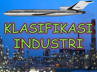 Dokumen tersebut membahas berbagai klasifikasi industri berdasarkan kriteria seperti jumlah tenaga kerja, proses produksi, bahan mentah yang digunakan, lokasi unit usaha, barang yang dihasilkan, dan subjek pengelola. Klasifikasi industri tersebut digunakan untuk mengatur dan mengembangkan industri di Indonesia, khususnya dalam kerangka Repelita.