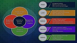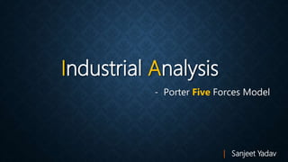 The document discusses Michael E. Porter's Five Forces Model, a tool for analyzing business competition and its profitability by evaluating microenvironment forces. It highlights the model's importance in formulating strategies, understanding industry structure, and achieving competitive advantage, while also noting criticisms regarding its objectivity. The model was first published in 1979 and remains influential in industry analysis.