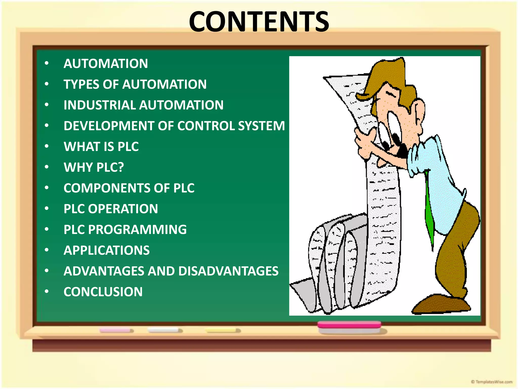 Industrial automation uses programmable logic controllers (PLCs) to automate manufacturing tasks. A PLC is an industrial computer that monitors inputs like sensors to make decisions based on a program and control outputs like machines. It uses ladder logic programming to run processes without human intervention. PLCs are widely used in industries like manufacturing, food processing, and aerospace automation due to advantages like replacing dangerous human work and improving productivity and quality.