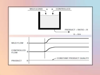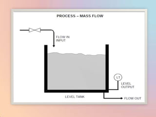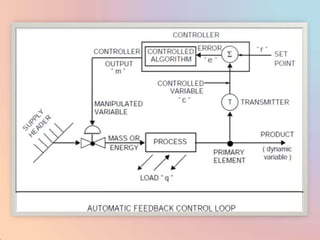 The document provides an extensive overview of process control, including definitions of key terms, types of control modes (open-loop, closed-loop, feedback, and feedforward), and various control algorithms like PID. It emphasizes the importance of choosing the right control strategy to maintain product quality, optimize energy use, and ensure safety. Additionally, it discusses the characteristics and performance aspects of control elements such as valves and transmitters in controlling mass and energy processes.