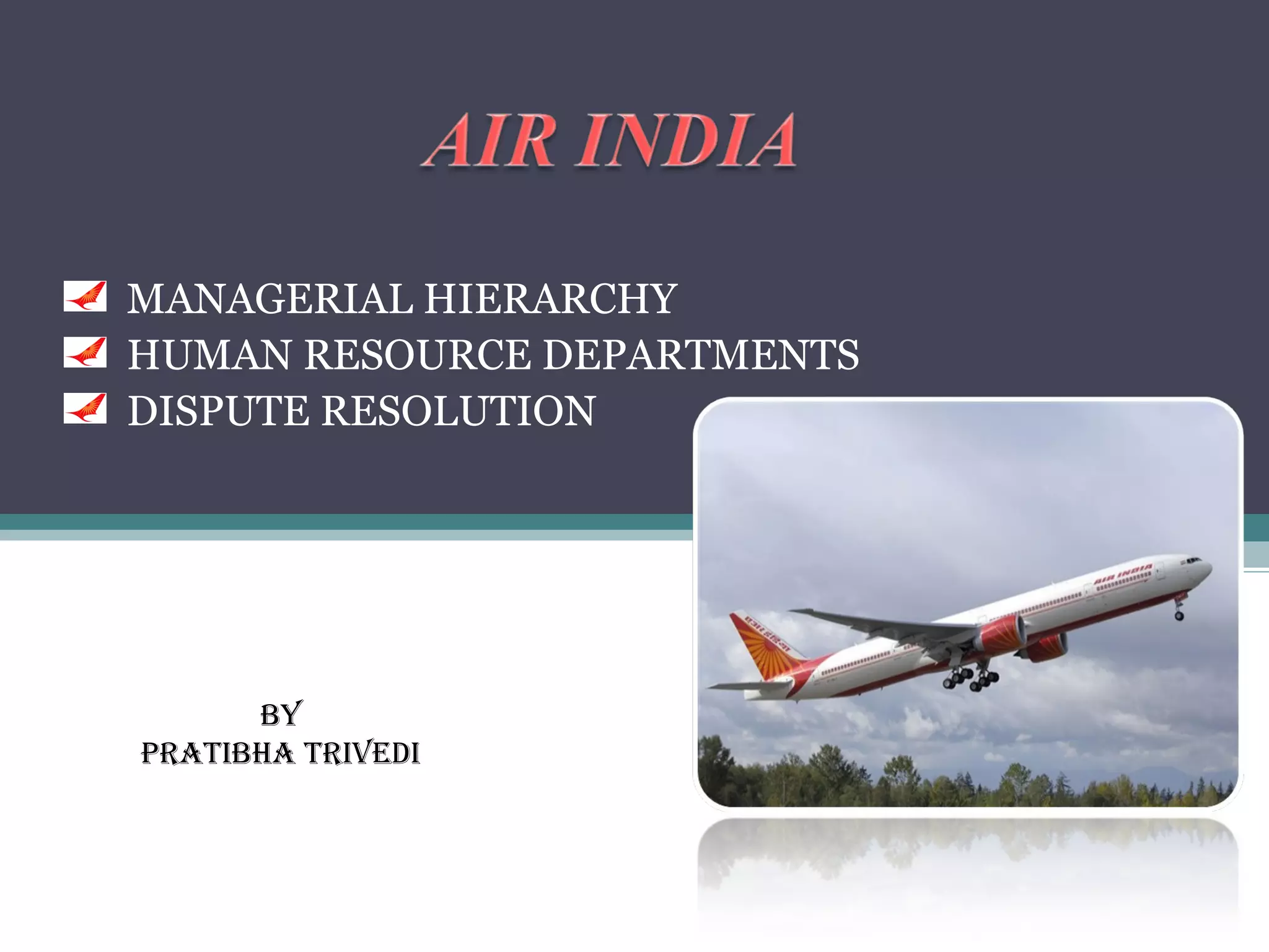 The document provides an overview of Air India's history, focusing on its managerial hierarchy and human resource functions, including recruitment and employee welfare. It addresses dispute resolution within the organization, the role of special cells for marginalized communities, and describes the industrial relations mechanisms in place, such as conciliation and adjudication. Key recommendations highlight the need for better data management and streamlining processes to enhance efficiency.