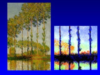 This document provides an overview of Realism and Impressionism in art, and discusses some of the technological and urban changes in Europe during the second half of the 19th century. It mentions Richard Wagner's opera cycle The Ring of the Nibelungen and discusses leitmotifs. The document also includes sample dialogue between characters discussing killing a rabbit with a magic helmet and spear.