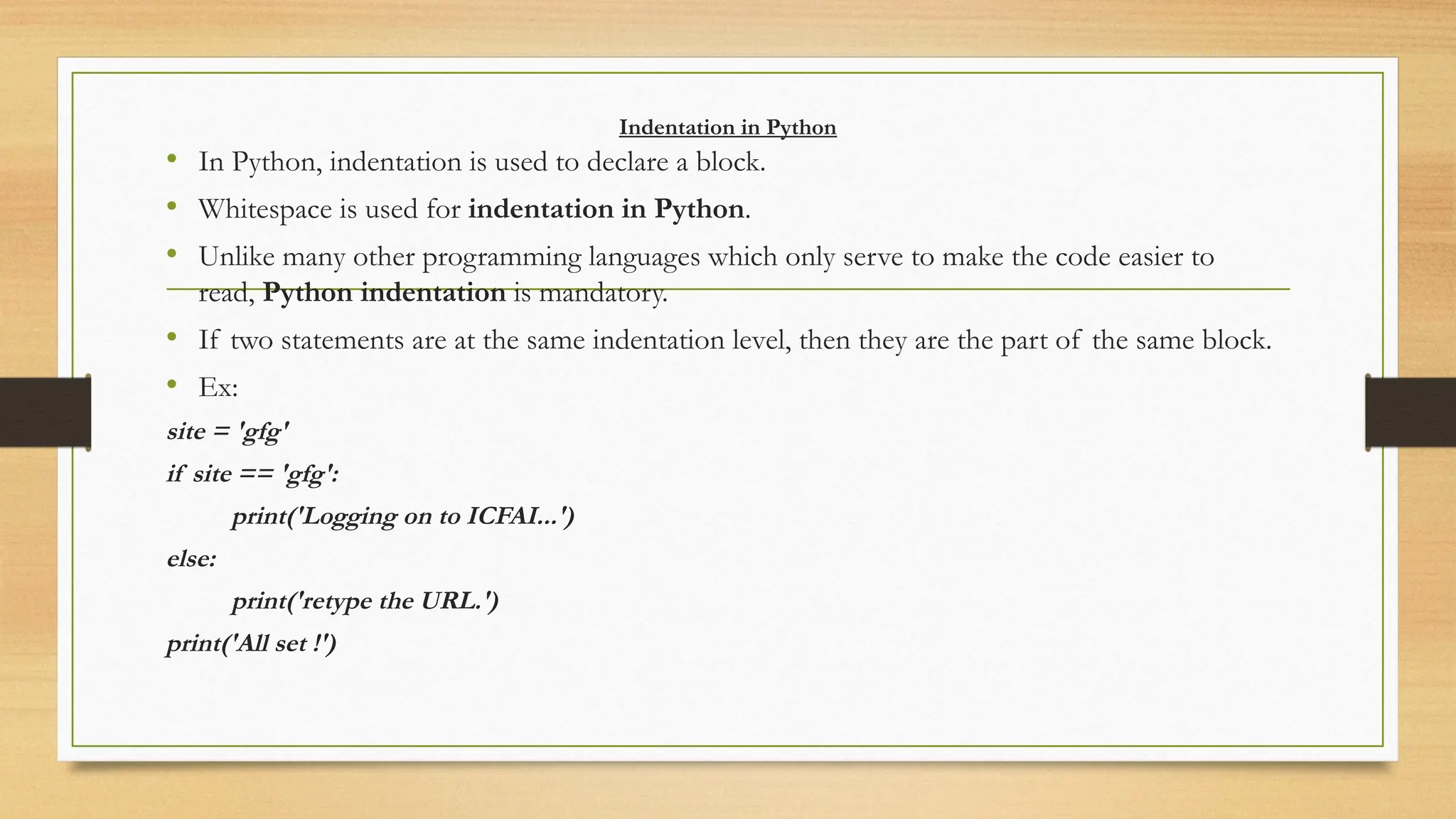 • If two statements are at the same indentation level, then they are the part of the same block.