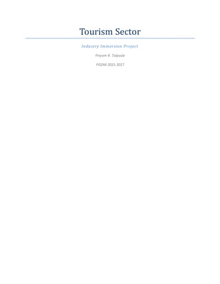 The document outlines an industry immersion project focused on the tourism sector in India, encompassing analyses such as Porter's five forces, PESTEL analysis, and value chain. It highlights India's position in global tourism, the socio-economic contributions of tourism, and identifies key players within the industry while addressing challenges related to infrastructure, safety, and environmental sustainability. The project aims to provide a comprehensive understanding of the sector's dynamics, challenges, and potential growth opportunities.