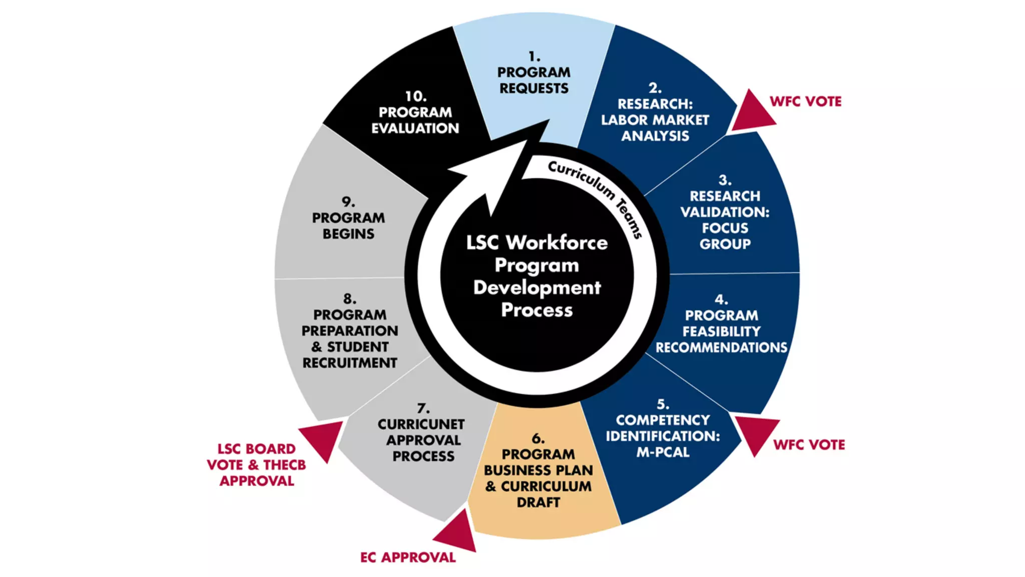 Strategic Partners help identify workforce trends and design processes to gather employer needs data. The Business & Industry Team identifies current and emerging job needs and aligns curriculum with jobs. Advisory Boards advise on competencies, new developments, and provide feedback on curriculum and student progress.