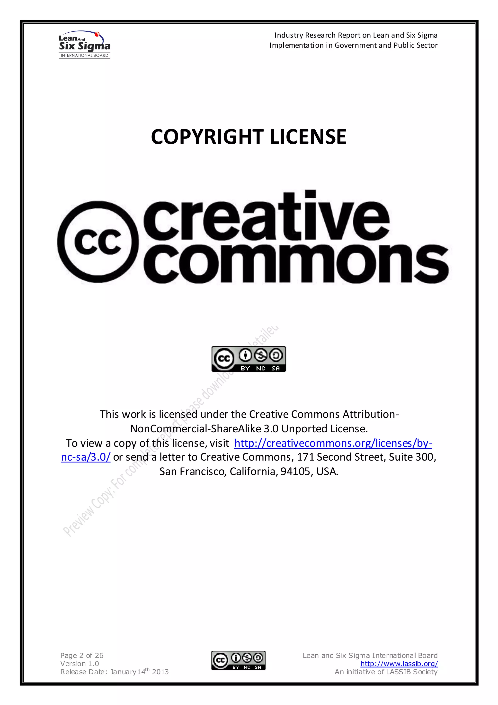 This document provides an industry research report on implementing Lean Six Sigma in government and public sector organizations. It discusses challenges currently facing organizations, challenges unique to the public sector, and how Lean Six Sigma can help address these challenges through strategic and operational benefits. The report proposes LASSIB's approach for implementation and provides case studies of Lean Six Sigma projects in government agencies that improved processes and reduced costs. It also provides overviews of Lean, Six Sigma, waste elimination, and Toyota Production System principles. The report is intended to showcase the benefits that Lean Six Sigma can provide to government and public sector entities.