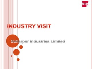 The Ballarpur Group is the largest manufacturer of writing and printing paper in India, operating 7 facilities across India and Malaysia. Bilt Paper PLC operates 4 of these facilities and focuses on bulk coated and uncoated paper. The Avantha Group owns 49.40% of Ballarpur Industries Limited. The visit included learning about Ballarpur's production process, raw materials used, quality control measures, employee training programs, and accident prevention measures. The group also toured the facility and learned about the mystery of three playing cards on the company gate.