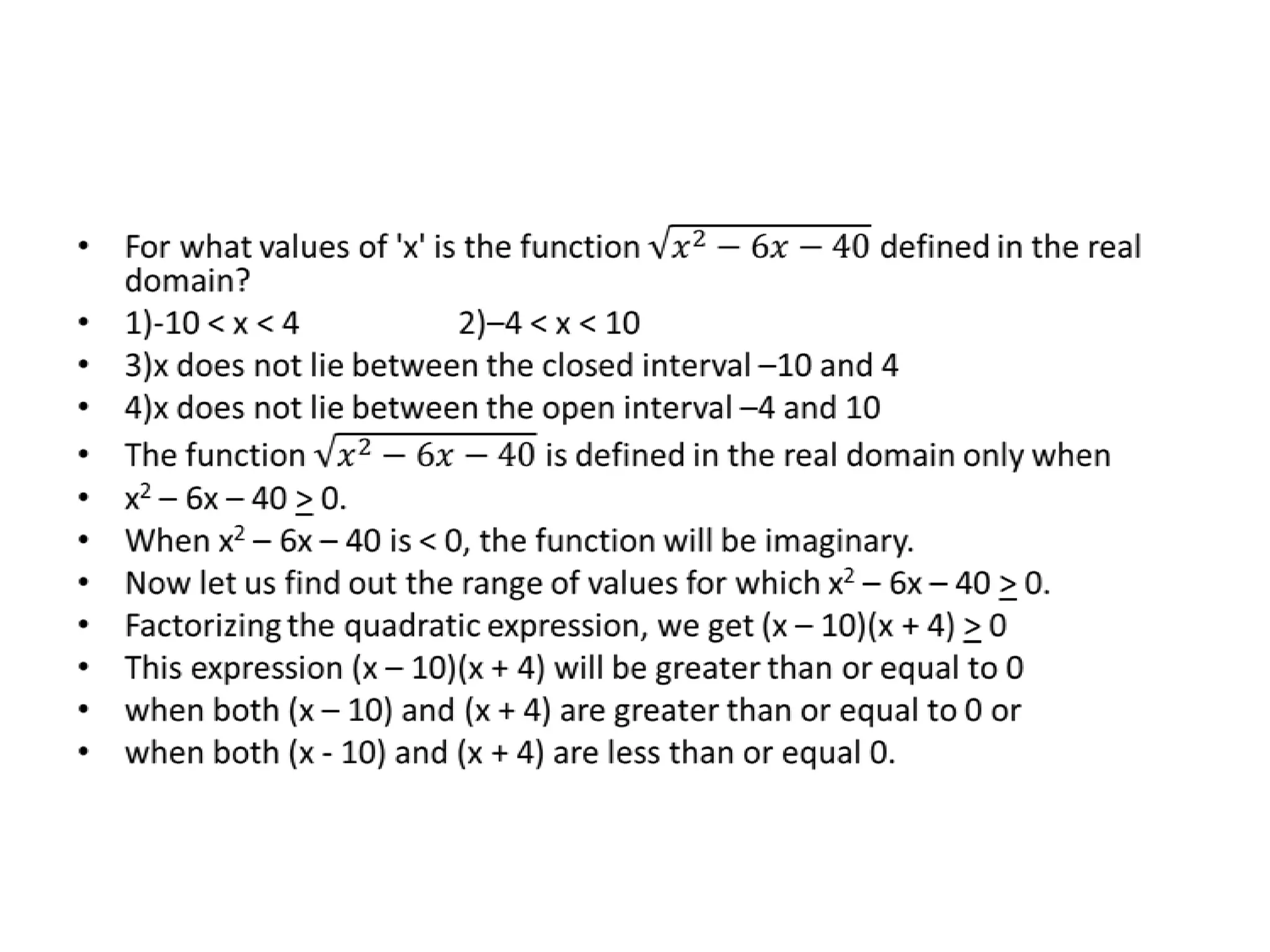 3) For the inequality x2 - 4x + 3 < 0, the range is finite between 1 and 3 as it is the only inequality that satisfies the condition of one term being positive and the other negative.
