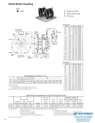 The document provides technical specifications and part numbers for a Model 310 clutch-brake coupling. It includes: