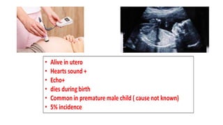 This document discusses various aspects of infanticide and determining whether a child was born alive or dead. It defines terms like infanticide, feticide, and filicide. It describes methods to investigate cases, including examining the mother and child. Signs of a live birth include changes in the lungs, stomach/intestines, and middle ear after respiration occurs. Tests like the hydrostatic test examine whether lungs float to determine if air was inhaled. The document discusses characteristics of stillborn and deadborn fetuses, maceration, and radiological signs of intrauterine death.