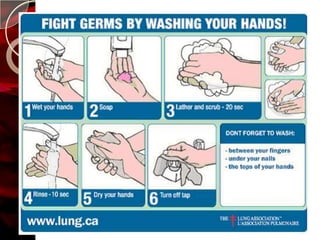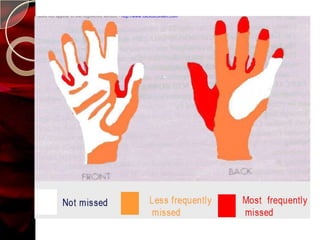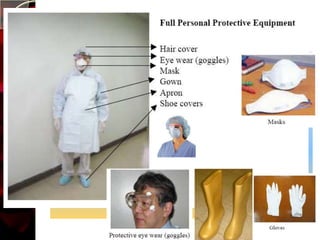 The document discusses infection control practices in hospitals, including how infections spread, standard and transmission-based precautions, environmental management, and methods for decontamination, sterilization, and disinfection. It provides details on the various disinfectants used in the hospital and guidelines for cleaning different equipment and environmental surfaces. The history and importance of infection control is also reviewed.