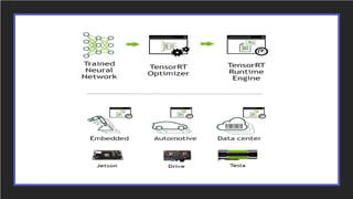 1. NVIDIA TensorRT which provides optimizations like layer and tensor fusion, kernel auto-tuning, and precision calibration to improve throughput, efficiency, latency, and memory usage.