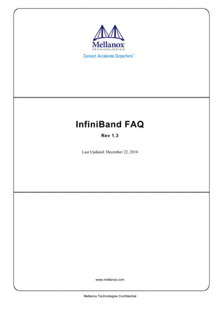 The document provides an overview of InfiniBand, including its key components and advantages over traditional network protocols. It describes InfiniBand as a high-performance switched fabric interconnect that uses Remote Direct Memory Access to transfer data between nodes with low latency and CPU overhead. The primary elements of an InfiniBand network are outlined as Host Channel Adapters, switches, subnet managers, and optional gateways and routers.