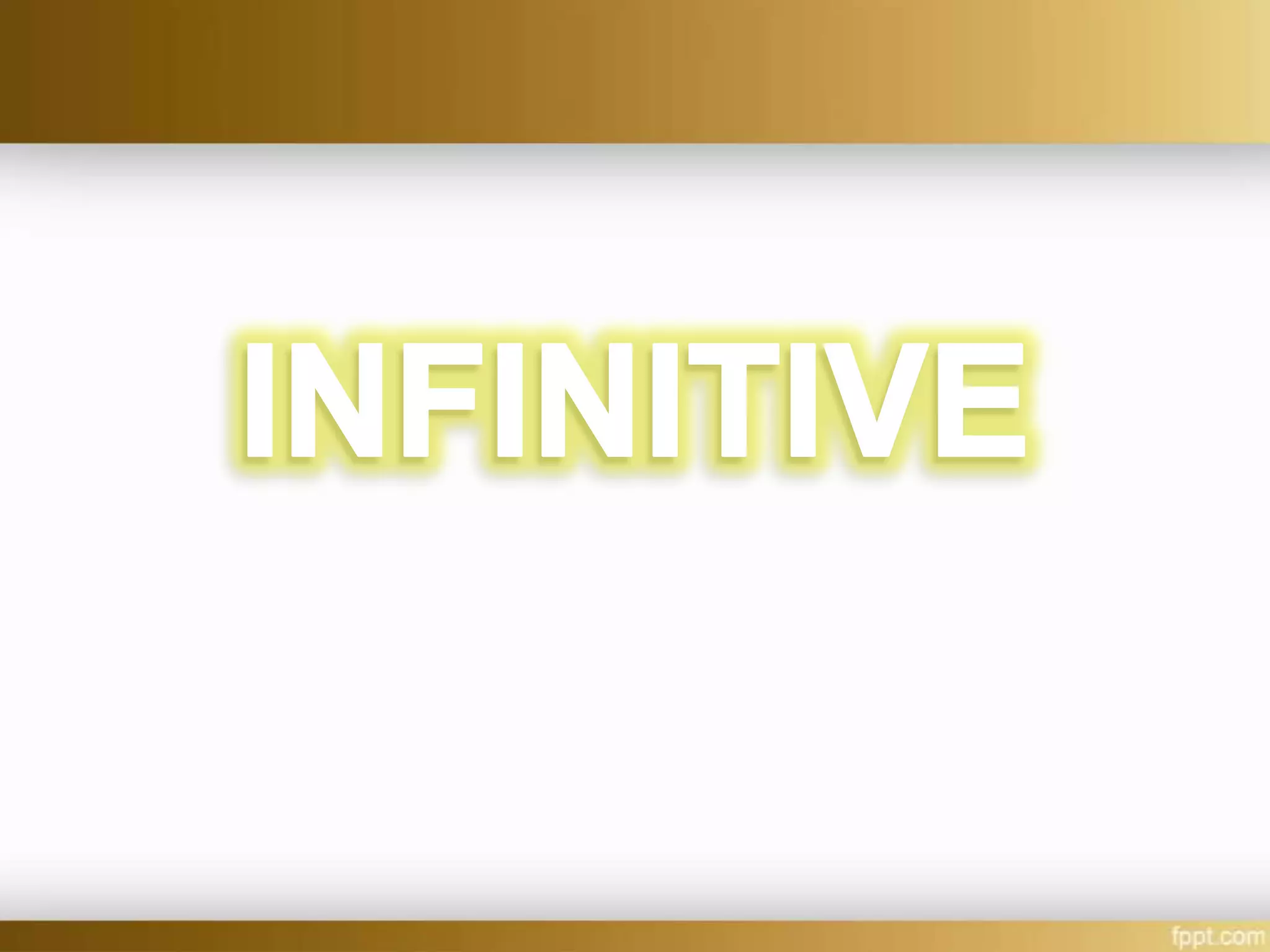 Infinitives are verb forms using "to" that can function as nouns, adjectives, or adverbs. Infinitives can be used as subjects, direct objects, predicate nouns, objects of prepositions, or appositives. They can also modify adjectives or adverbs. An infinitive phrase is an infinitive along with any modifiers or complements that acts as a single part of speech. Examples are provided of infinitives functioning as different parts of speech in sentences.