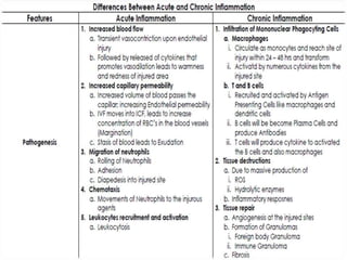 1. Inflammation is the body's protective response to injury or infection that involves blood vessels, immune cells, and chemical mediators.