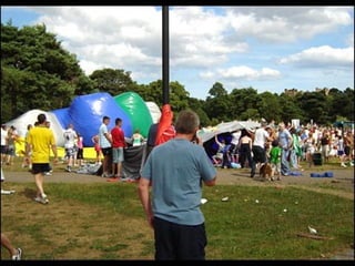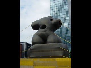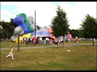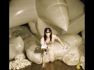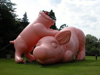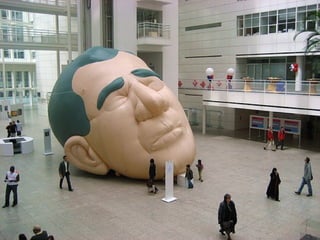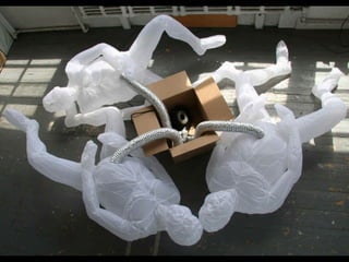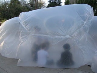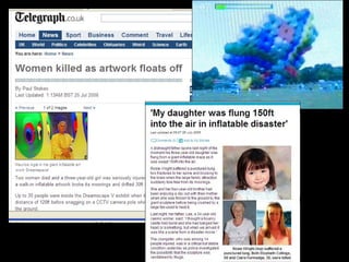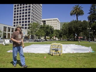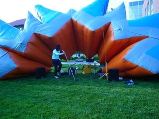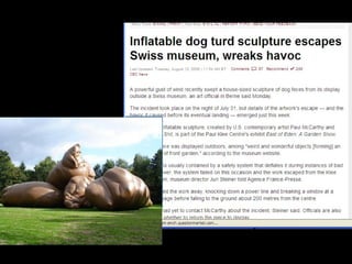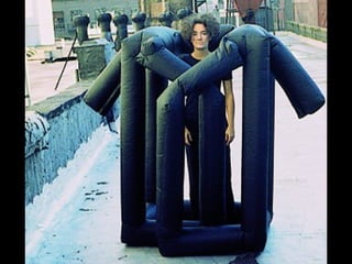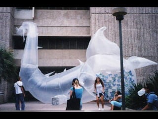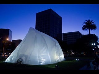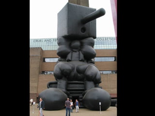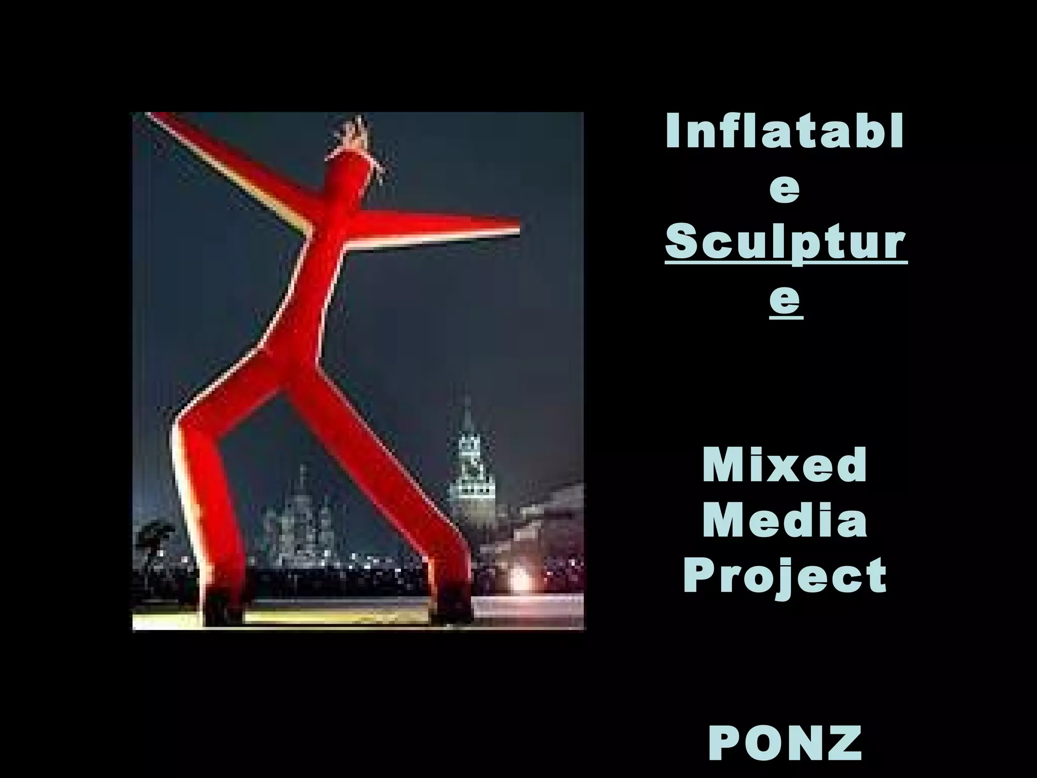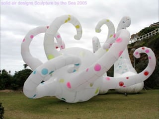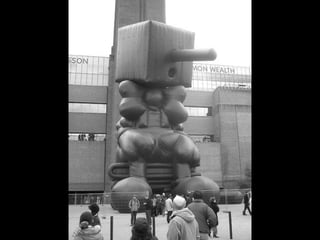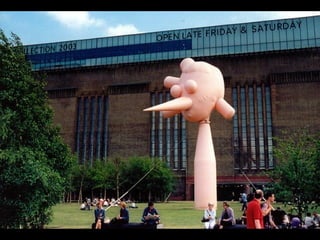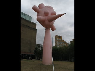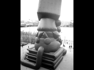 This document provides information about an inflatable sculpture mixed media project displayed at the Tate Modern from May to October 2003. It also includes links to videos and instructables about inflatable sculptures and NYC street art by artist Joshua Allen Harris.