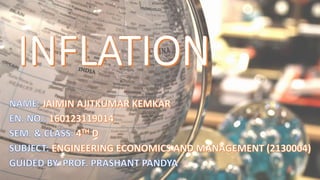 The document discusses inflation as an economic phenomenon characterized by the increase in money supply leading to rising prices and decreased purchasing power. It explains various types of inflation and their effects, particularly on fixed-income earners. Additionally, it outlines the cyclical nature of price changes and how external factors like war can impact supply and demand dynamics.