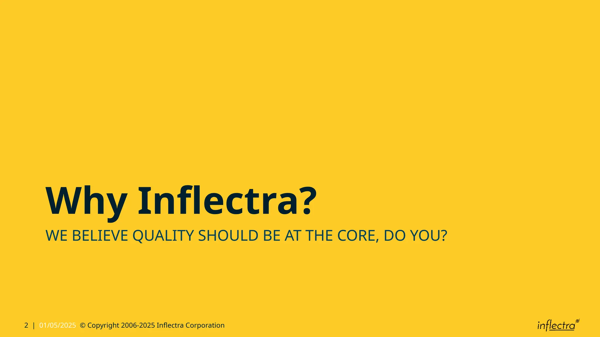 Inflectra offers its customers a trusted and seamless platform for creating and releasing their most important technology products on time and with the highest quality. The Inflectra suite includes capabilities for managing requirements, test cases, resources, risks and automating all aspects of the entire software development lifecycle.