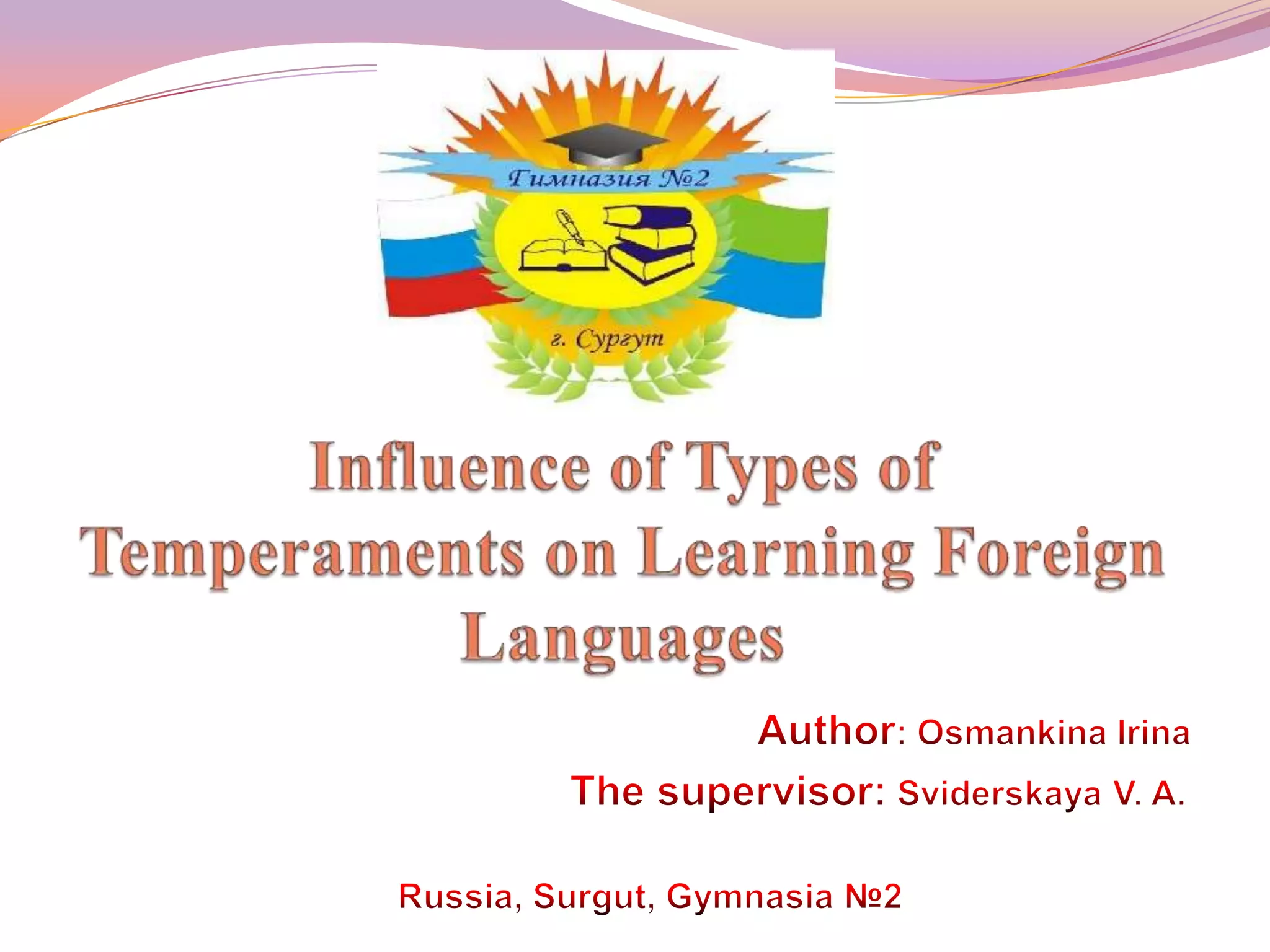 The document discusses types of temperament and their influence on learning foreign languages. It defines temperament as a combination of individual qualities that characterize a person's dynamics. There are four main temperament types: choleric, melancholic, sanguine, and phlegmatic. The document analyzes how each temperament type may influence language learning, such as sanguine types finding it easier due to their communicative nature. It also reports the results of a study that identified the temperament types of students, teachers, and language faculty to determine if temperament influences language learning.
