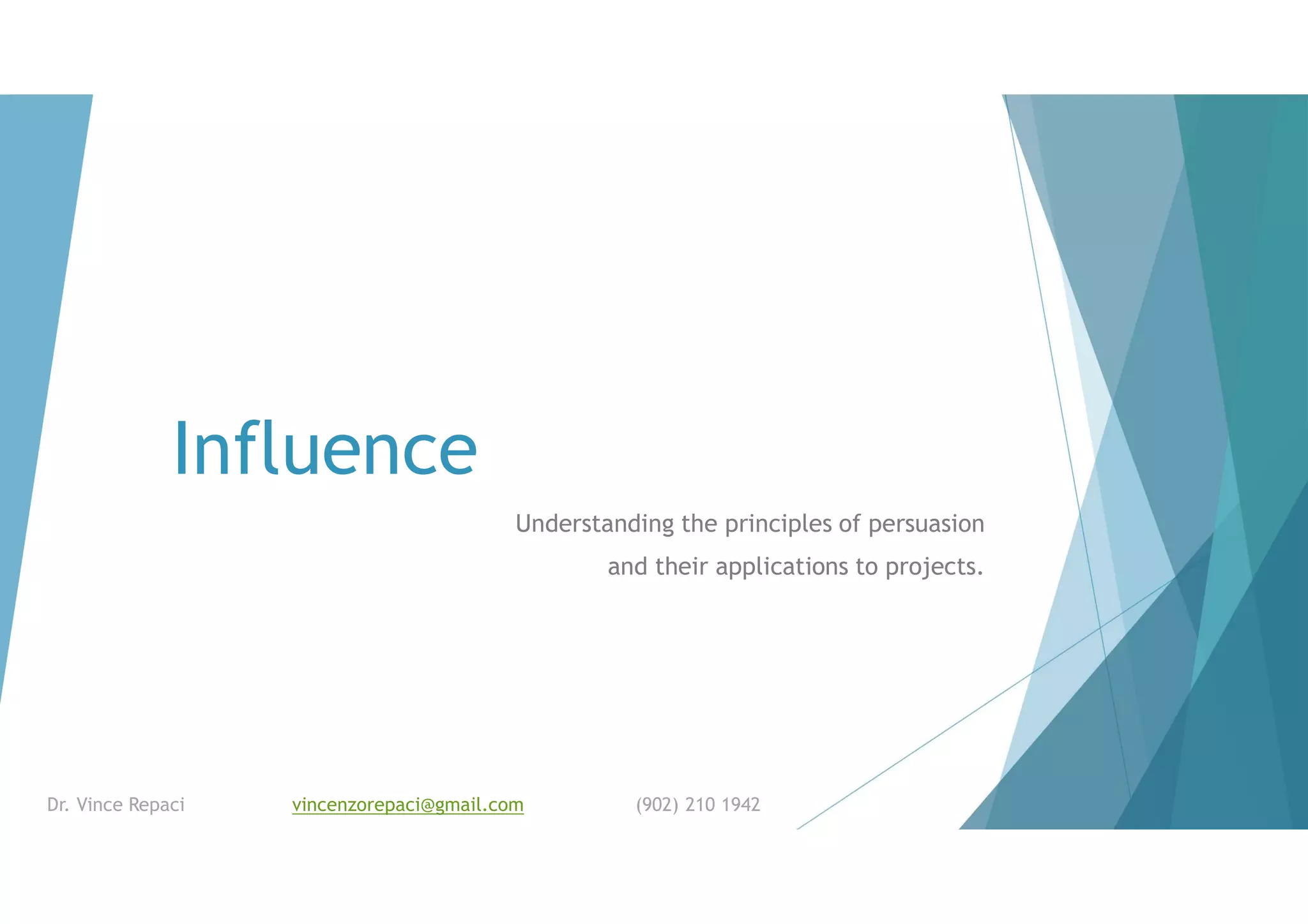 The document discusses the principles of persuasion and their applications in project management, emphasizing the importance of commitment, reciprocity, liking, authority, and scarcity. It highlights that decision-making often involves emotional factors rather than strictly logical ones, and suggests strategies to enhance stakeholder engagement and project team dynamics. Additionally, it underscores the need to manage perceptions of authority and social proof to improve project outcomes.