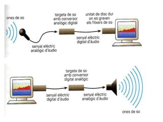 AUDIO DIGITALEn realitatno existeixen dos tipus de so, és a dir, no existeix un so digital i un altreanalògic. Comjahemvist, el so esta produït per vibracions de cossos que provoquen variacions de pressió en l'aire, les quals arriben a la nostraoïda i ens donen la sensació del so. Quanes fa la diferència entre el so analògic i digital en realitat es fa referència al procés en el qual es tractenelssenyalselèctrics que méstardsónconvertits en so.