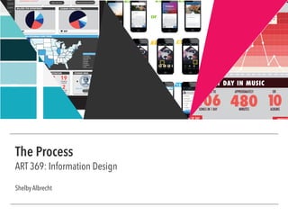 The student created an infographic to share details about their daily music listening habits. Research involved tracking songs listened to over the course of a day, noting genre and time. Design iterations included different graph types and layouts to visualize the data collected. The final design uses dot graphs, bars and pie charts to show number of songs, productivity levels and genre breakdown over time. It aims to give insight into how integral music is to the student's daily routine.