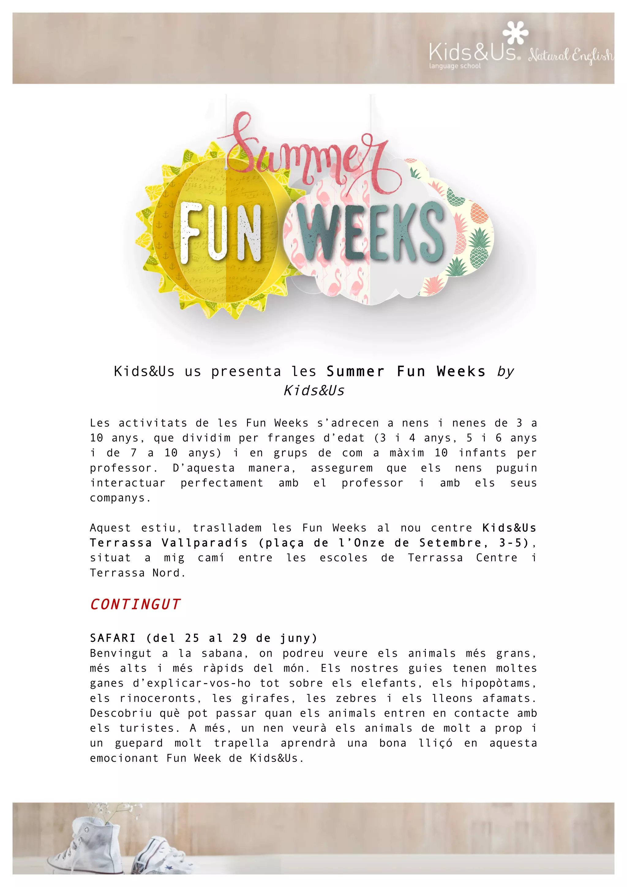 Aquest estiu, traslladem les Fun Weeks al nou centre Kids&Us