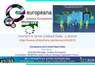 The document discusses the integration of linked open data within the Europeana project, focusing on digitized Israeli and Jewish cultural content. It highlights the impact of digitization, the development of a Jewish knowledge grid, and examples of collaborative efforts in enhancing digital access to Jewish studies. Additionally, it emphasizes the importance of linking various vocabularies and encyclopedias to improve the structure and accessibility of Jewish knowledge online.