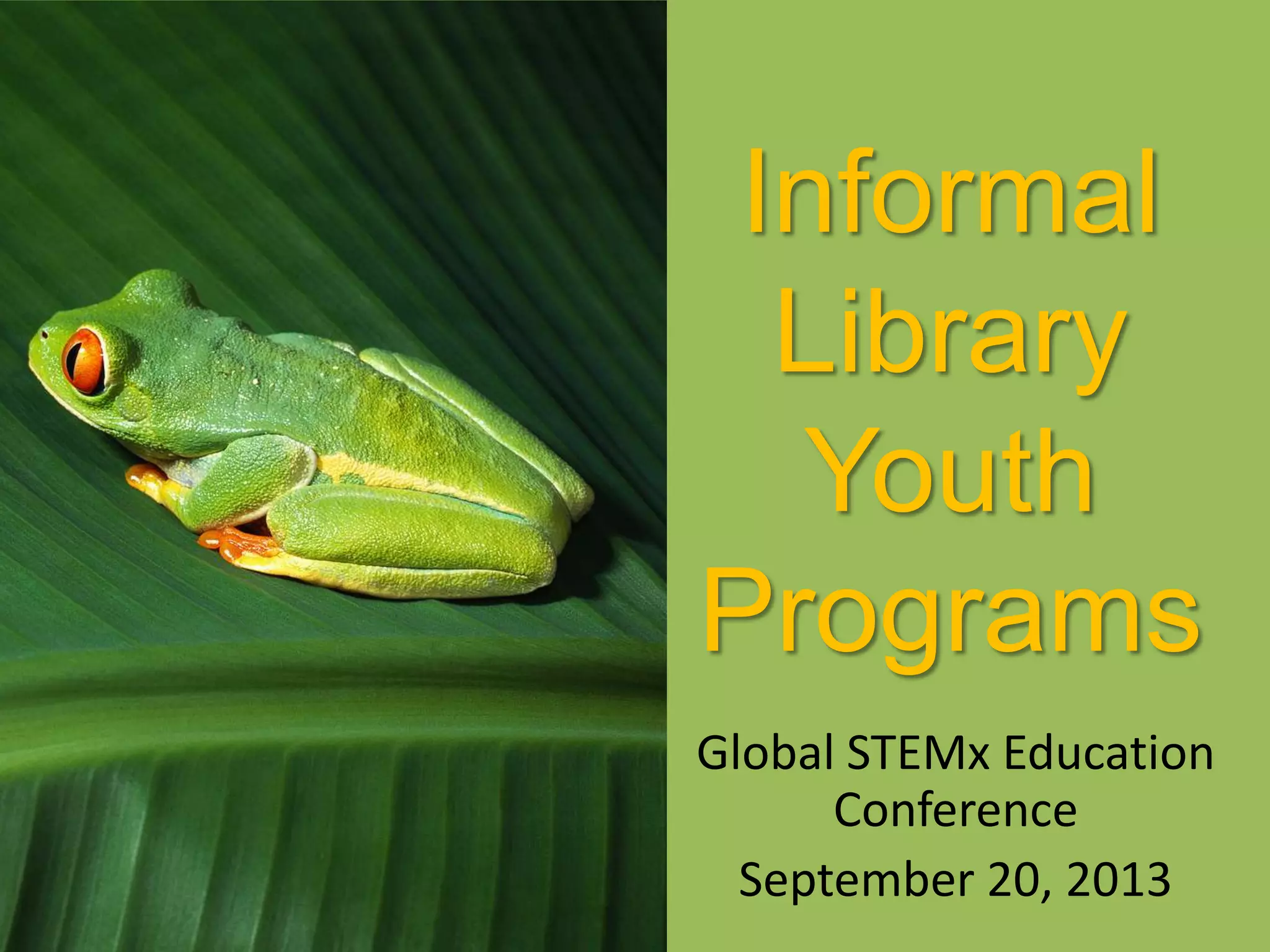 The document discusses the integration of STEM programs in libraries, emphasizing the importance of community partnerships and collaboration between schools and libraries. It outlines various informal STEM activities, programming for different age groups, and encourages the pairing of fiction with non-fiction to enhance literacy. Additionally, it provides resources and contact information for further engagement in STEM education.