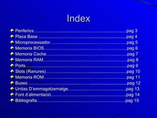 Memoria Cache Lamemoria cache: es aquella memoria d’alta velocitat instal-lada en el mateix processador i en la qual s'emmagatzemen les dades que el microprocessador necessita utilitzar més freqüentment.